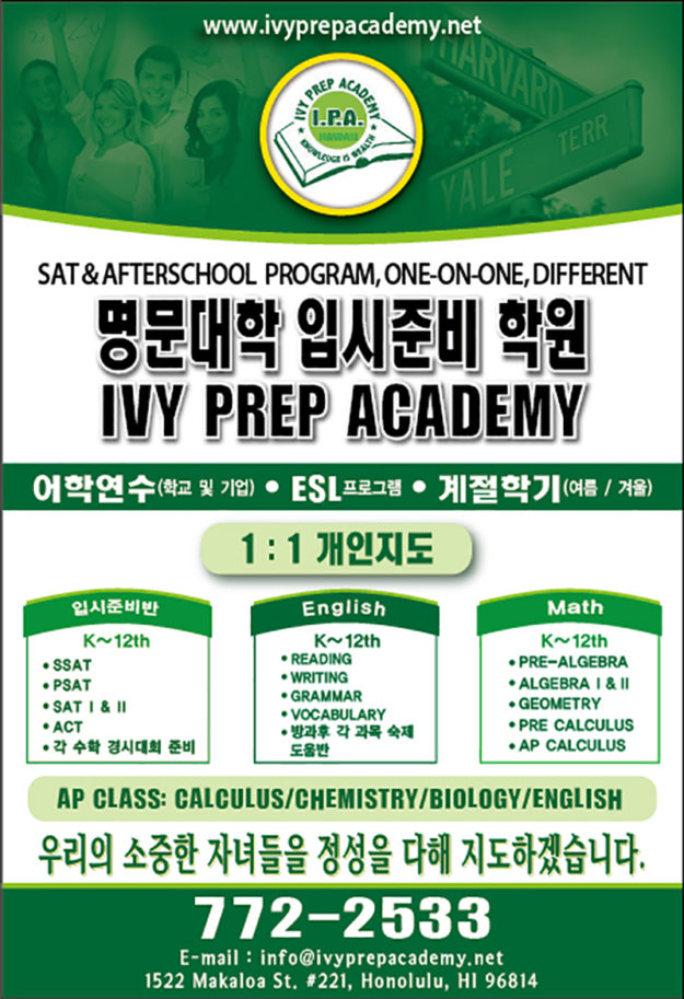 Korean Press 교차로 사설 – 썸머 프로그램의 선택 기준 (3.7.2020) 교차로 사설 – 봄방학 (Spring Break)을 알차게 보내야 하는 이유(02.25.2020) 교차로 – 성적향상을 위한 집중력 향상과 적극적인 수업 참여의 필요성…